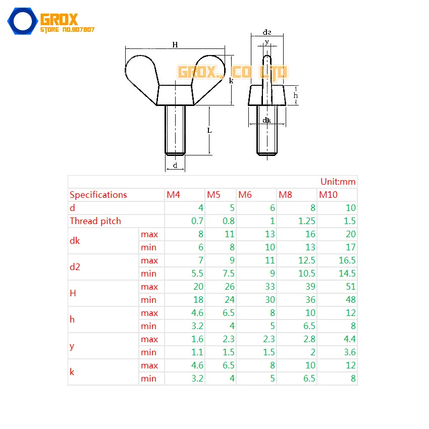 Wing Bolt Size Chart
